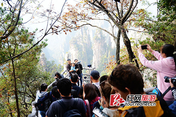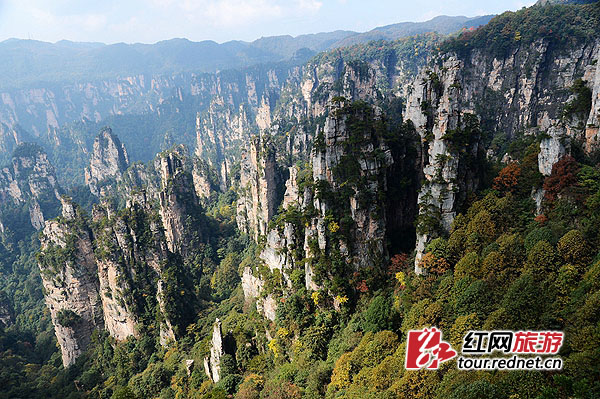 紅網(wǎng)時刻10月30日訊(通訊員 鄧道理)金秋武陵源,美景惹人羨。十月將盡。世界自然遺產(chǎn)地張家界武陵源風景名勝區(qū)天子山、袁家界、黃石寨一帶深秋風景異常迷人,紅的、黃的、紫的、綠的樹葉把一座座山峰裝扮得五彩斑斕,恍若童話世界,令海內外游客陶醉忘返。