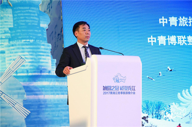 推介會(huì)上,黑龍江省旅游發(fā)展委員會(huì)侯偉副主任在致辭中說(shuō)道:“黑龍江的冰天雪地美不勝收,黑龍江的冰雪旅游樂(lè)趣無(wú)窮!”他重點(diǎn)介紹了黑龍江優(yōu)質(zhì)的冰雪旅游資源以及全新打造的十大主題產(chǎn)品,向北京及華北地區(qū)的游客發(fā)出了盛情邀請(qǐng)。中青旅控股股份有限公司董事、副總裁,中青博聯(lián)整合營(yíng)銷顧問(wèn)股份有限公司董事長(zhǎng)袁浩指出:“北國(guó)明珠黑龍江給人的第一個(gè)感覺(jué)就是幸福,是那種帶有溫度,熱烘烘喜洋洋的幸福。黑龍江旅游品牌不斷走向世界舞臺(tái),冰雪之冠日漸家喻戶曉。這也是為什么這些年中青旅一直萬(wàn)分重視這片熱土,重視這份千里合作姻緣的原因!