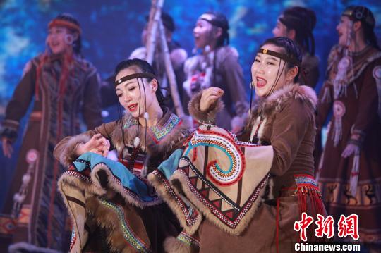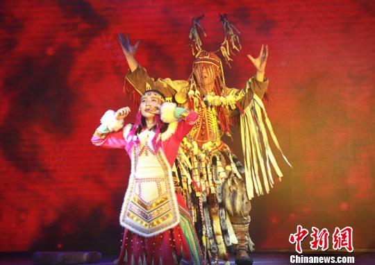圖為鄂溫克女主角深情演繹舞臺劇 郭偉偉 攝