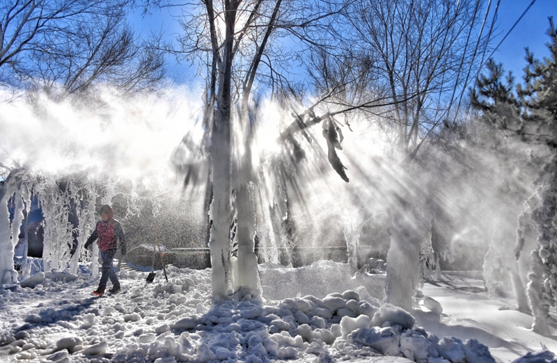 1月14日,玉渡山風(fēng)景區(qū)利用不凍山泉制作的冰雪景觀。 近日,眾多游客來到北京市延慶區(qū)玉渡山冰雪世界體驗(yàn)冰雪游樂活動(dòng)。延慶區(qū)玉渡山位于燕山山脈海坨山腳下,玉渡山風(fēng)景區(qū)利用氣溫低、高山降雪和不凍山泉等自然優(yōu)勢(shì)打造了人工冰瀑、冰川等冰雪景觀,以及高山滑冰滑雪、雪地爬犁、雪圈等冰雪游客項(xiàng)目,每天吸引各地游客超過1000人次。 新華社記者 李欣 攝 -