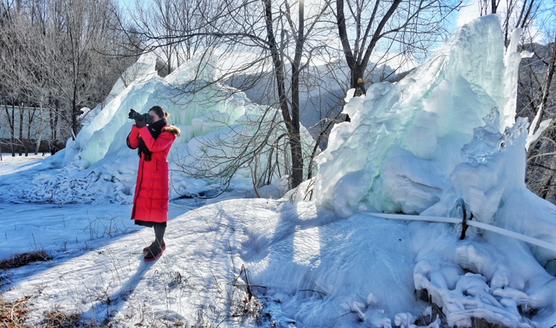 1月14日,游客在玉渡山拍攝山泉冰瀑。 近日,眾多游客來到北京市延慶區(qū)玉渡山冰雪世界體驗(yàn)冰雪游樂活動(dòng)。延慶區(qū)玉渡山位于燕山山脈海坨山腳下,玉渡山風(fēng)景區(qū)利用氣溫低、高山降雪和不凍山泉等自然優(yōu)勢(shì)打造了人工冰瀑、冰川等冰雪景觀,以及高山滑冰滑雪、雪地爬犁、雪圈等冰雪游客項(xiàng)目,每天吸引各地游客超過1000人次。 新華社記者 李欣 攝 -