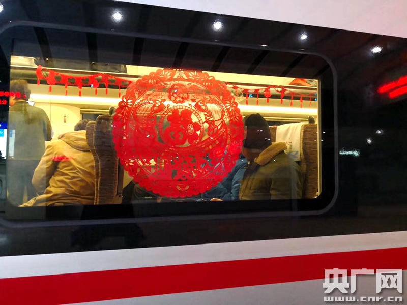 2018年2月1日,春運首日,“復(fù)興號”高鐵列車貼上紅紅福字。(央廣網(wǎng)發(fā) 李溢春攝)