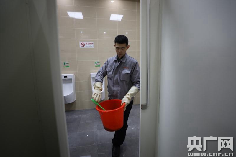 2017年7月,沈陽(yáng)北站抽調(diào)部分客運(yùn)員轉(zhuǎn)崗成為保潔員,負(fù)責(zé)車(chē)站候車(chē)室公共廁所的衛(wèi)生保潔工作。27歲的客運(yùn)員劉浩主動(dòng)報(bào)名,成為保潔隊(duì)伍中的一員,成為候車(chē)大廳A14男衛(wèi)生間守廁人。