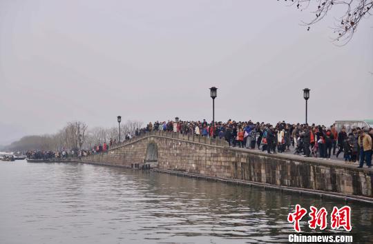原標(biāo)題:春節(jié)假期百萬(wàn)游客涌入杭州西湖 “人海游湖”成新景觀