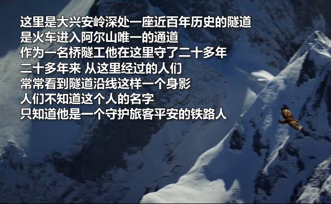 央廣網(wǎng)北京2月19日消息 凄厲的蒼鷹,白雪皚皚的大興安嶺,一座孤零零的巡道房,一座近百年歷史的隧道,一個(gè)迎送火車的老巡守員。