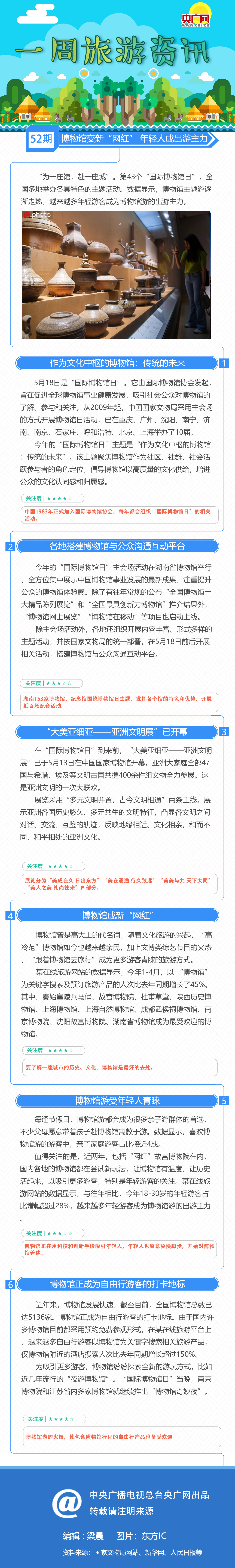 “為一座館,赴一座城”。第43個(gè)“國(guó)際博物館日”,全國(guó)多地舉辦各具特色的主題活動(dòng)。數(shù)據(jù)顯示,博物館主題游逐漸走熱,越來(lái)越多年輕游客成為博物館游的出游主力。