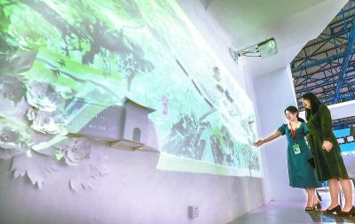 昨天,觀眾正在瀏覽《尋跡大運(yùn)河》多媒體裝置。當(dāng)天,第十四屆北京文博會(huì)開(kāi)幕。本報(bào)記者 方非攝