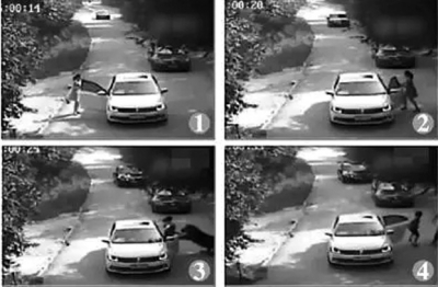 趙某母親周某打開(kāi)左后車(chē)門(mén)追趕。網(wǎng)絡(luò)圖片