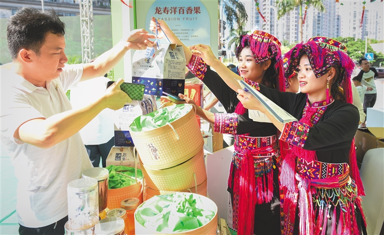 活動中,消費(fèi)者購買五色粽。海南日報(bào)記者 袁琛 攝