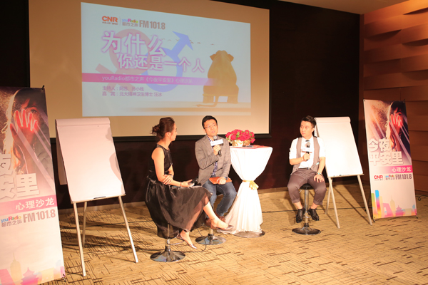 8月24日,音樂節(jié)目中心都市之聲1018俱樂部月度活動(dòng)---《今夜平安里》心理沙龍第二季成功舉辦。這一季的主題針對(duì)當(dāng)今白領(lǐng)人群單身男女在兩性交往中遇到的難題展開,由《今夜平安里》主播阿蘇,《后海星光下》主播孫錢主持,特別邀請(qǐng)北京大學(xué)精神衛(wèi)生博士汪冰老師擔(dān)任特邀嘉賓,和現(xiàn)場(chǎng)聽友們通過互動(dòng)游戲,心理講座等多種方式深入探討了“你為什么還是一個(gè)人”的情感困擾。