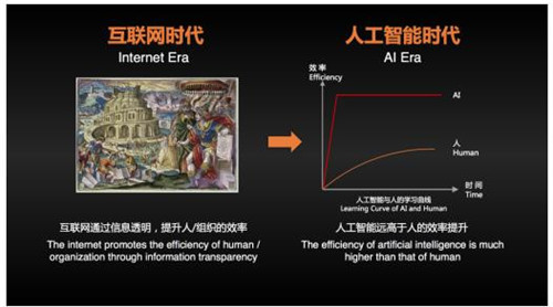 亞當(dāng)斯密在國(guó)富論開篇即提到,財(cái)富積累來自社會(huì)分工和效率提升。而王小川認(rèn)為,互聯(lián)網(wǎng)時(shí)代與人工智能時(shí)代的一大區(qū)別,即在于效率提升,這也是人工智能發(fā)展給人類社會(huì)帶來的影響之一!霸诨ヂ(lián)網(wǎng)時(shí)代,我們通過‘連接’使得信息更加透明,從而促進(jìn)人類社會(huì)分工,提升效率;而在人工智能時(shí)代,則是因?yàn)闄C(jī)器能夠比人更有效率地去學(xué)習(xí),使得我們的商業(yè)效率得到極大的提升,比如利用AI的能力,在金融、醫(yī)療、智能硬件中替代部分人類的工作”。