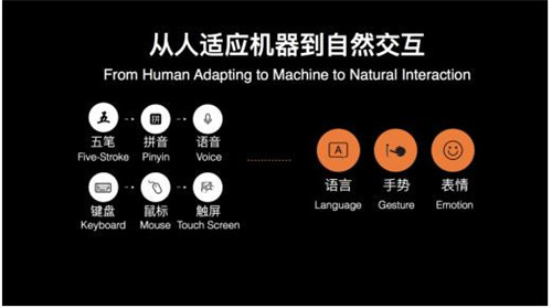 “除了提升傳統(tǒng)行業(yè)效率,人工智能還會(huì)帶來人機(jī)交互的改變”。王小川解釋道,在人類輸入方式的變遷中,就可以看到從五筆到拼音到語(yǔ)音,從鍵盤到鼠標(biāo)到觸屏,人類和機(jī)器交互的方式已經(jīng)越來越“人性化”,通過語(yǔ)音識(shí)別、圖像識(shí)別等技術(shù)水平的提升,人類可以用自然的方式和機(jī)器進(jìn)行交互,而不是被迫去適應(yīng)機(jī)器,重新建立一套和機(jī)器對(duì)話的語(yǔ)言。