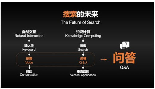 王小川進(jìn)一步談到在自然交互和知識(shí)計(jì)算領(lǐng)域,產(chǎn)品如何進(jìn)行應(yīng)用落地。他以搜狗的產(chǎn)品為例進(jìn)行解讀,“搜狗有兩個(gè)核心產(chǎn)品,一個(gè)是輸入法,一個(gè)是搜索引擎。隨著人工智能的到來,也分別有相應(yīng)的突破:在自然交互里面,輸入法會(huì)變成語(yǔ)音輸入,然后走向?qū)υ;另一方面是搜索,作為知識(shí)計(jì)算的引擎,走向問答”。