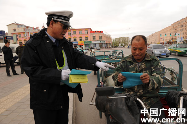 中廣網(wǎng)呼和浩特5月8日消息(記者那森寶音 通訊員徐海晨)趙樹森是內(nèi)蒙古赤峰市松山區(qū)公安分局交警大隊(duì)的一名普普通通的崗勤民警,他和其他崗勤民警一樣,每日在馬路上疏導(dǎo)交通,糾正違章,默默地為千千萬萬道路交通參與者的安全出行做著自己的貢獻(xiàn)。大多數(shù)人認(rèn)為,在警察的行列中,交通警察的工作是最平淡、最枯燥,最勞累,最不容易做出驚天動(dòng)地的業(yè)績,可是老趙并不這樣看,他認(rèn)為只要付出了智慧和汗水,每個(gè)工作崗位都能干出成績。