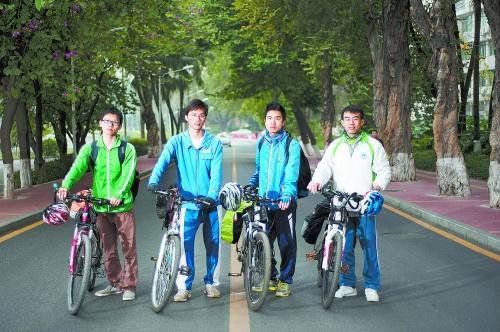 1月24日,23歲的陳悅建、陳徐濤,21歲的鄭建民,22歲的楊澤彪(從左至右)4名廣東籍大學生準備從廣州出發(fā),用騎行的方式返鄉(xiāng)。經(jīng)過兩到三天的騎行,他們陸續(xù)安全到家。他們說:“想要真切地知道依靠自己的力量,到底可以走多遠!绷盒 攝