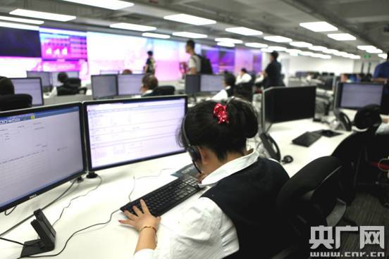 三菱電梯遠(yuǎn)程中心控制室里,工作人員實(shí)時監(jiān)測全國電梯的運(yùn)行情況 央廣網(wǎng)記者高藝寧攝