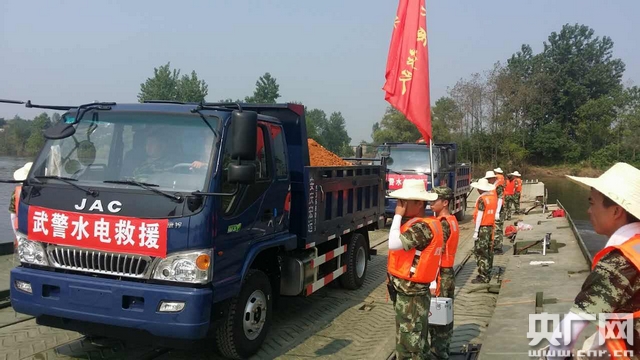 據(jù)現(xiàn)場(chǎng)指揮員武警水電部隊(duì)副政委董漢民介紹,目前已經(jīng)把大型機(jī)械送到5號(hào)決口處展開作業(yè),砂石料也通過(guò)動(dòng)力舟橋送到?jīng)Q口處展開封堵。