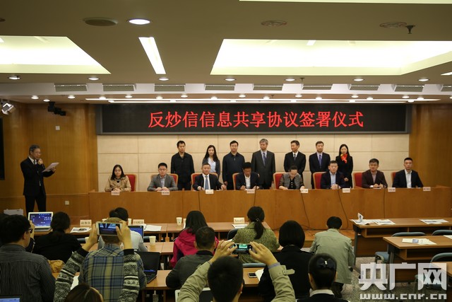阿里巴巴、騰訊、京東等8家企業(yè)代表共同簽訂“反炒信”信息共享協(xié)議 央廣網(wǎng)記者高藝寧攝