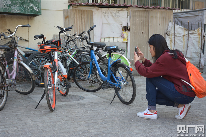 只要逮到正規(guī)停放點(diǎn)以外的車輛,她都要停下腳步,打開(kāi)手機(jī),拍照取證,向官方舉報(bào),并通知維護(hù)人員將它們物歸原地,以方便大家騎行。