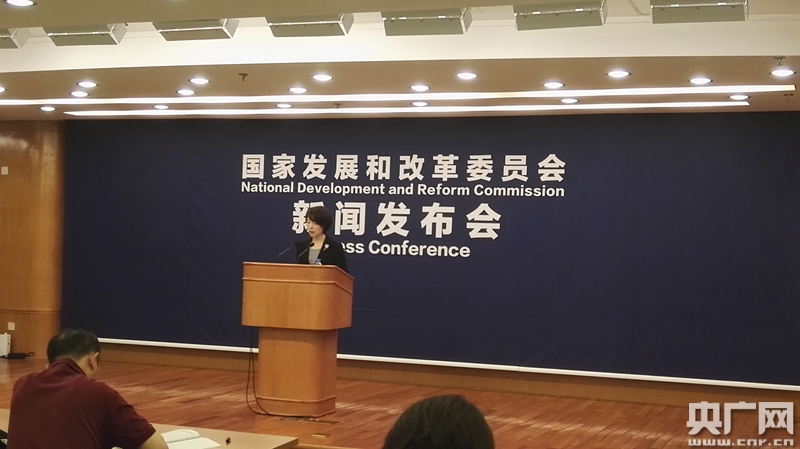 發(fā)改委政策研究室副主任兼新聞發(fā)言人孟瑋在會上介紹了中國宏觀經濟運行情況 央廣網記者 劉一荻攝