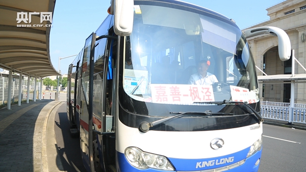 彭亮每天乘坐楓涇到嘉善的通勤巴士上班