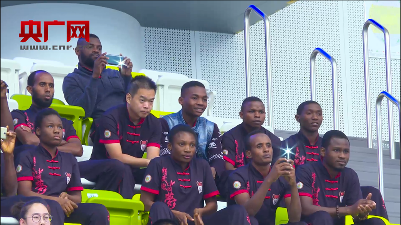 在比賽場(chǎng)館的觀眾席上,記者見到了一群來(lái)自非洲五國(guó)的朋友們。從今年7月起,他們從各自的國(guó)家聚集在天津霍元甲文武學(xué)校,開始了為期三個(gè)月的武術(shù)學(xué)習(xí)。