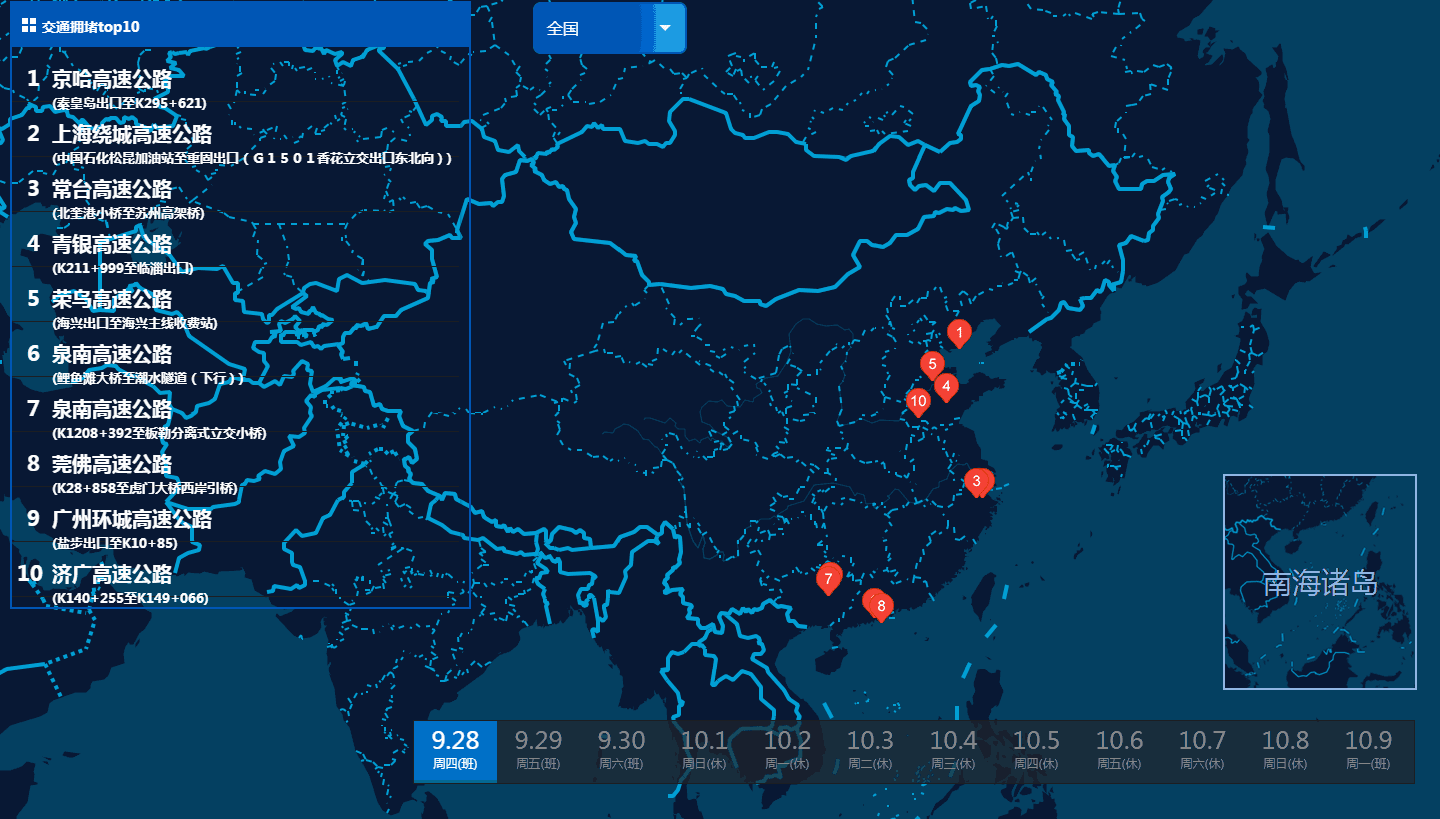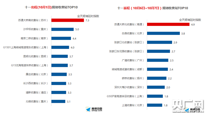 10月1日0點全國最擁堵收費站TOP 10