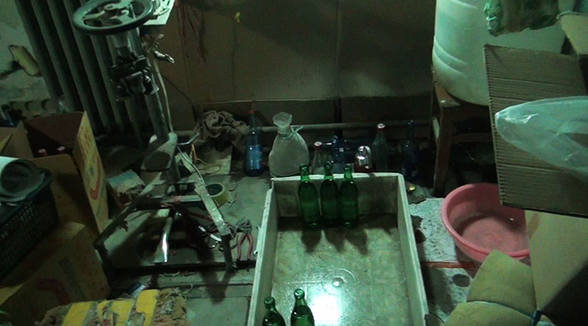 2018年1月,環(huán)食藥旅總隊(duì)接到舉報(bào),在北京市朝陽十八里店鄉(xiāng)某村,盤踞一生產(chǎn)銷售假酒團(tuán)伙,經(jīng)過偵查人員縝密偵查,發(fā)現(xiàn)該假酒團(tuán)伙以親戚、老鄉(xiāng)為紐帶,把租住的村民自建房作為生產(chǎn)、加工、存儲假酒窩點(diǎn),將假酒灌裝至收購來的酒瓶中,并包裝成品牌白酒,銷售至周邊市場,形成了生產(chǎn)、加工、銷售“一條龍”的全鏈條,嚴(yán)重?cái)_亂北京市酒類市場生產(chǎn)經(jīng)營秩序,危害到人民群眾的健康。