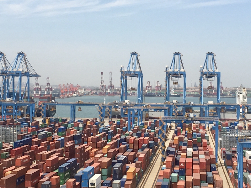 青島港全自動(dòng)化集裝箱碼頭 央廣記者 朱敏 攝