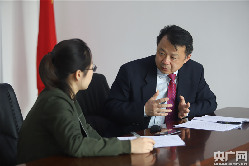 內(nèi)蒙古和林格爾新區(qū)產(chǎn)業(yè)招商服務(wù)組負(fù)責(zé)人王獻(xiàn)向央廣網(wǎng)記者介紹新區(qū)招商情況。(央廣網(wǎng)記者 張佳琪 攝)