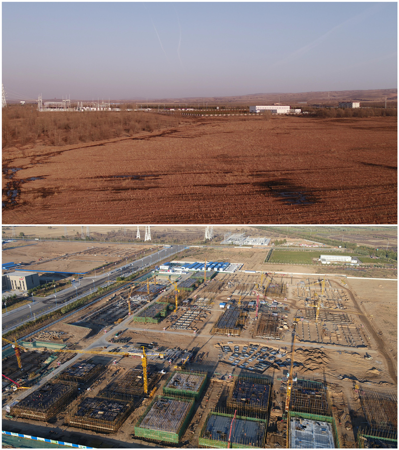 內(nèi)蒙古和林格爾新區(qū)智能制造產(chǎn)業(yè)園前后對(duì)比圖。(內(nèi)蒙古和林格爾新區(qū)供圖)