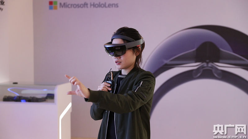 記者佩戴VR眼鏡感受虛擬造車過程。(央廣網(wǎng)記者 張佳琪攝)