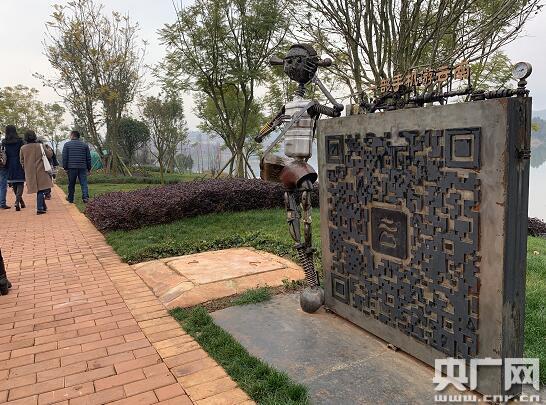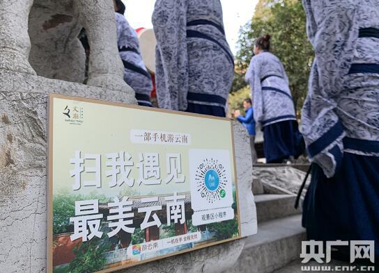 在位于云南彌勒市的東風(fēng)韻文化小鎮(zhèn)大門外,放置著一塊大型“一部手機(jī)游云南”App二維碼,游客可掃碼下載。(央廣記者 孫冰潔 攝)