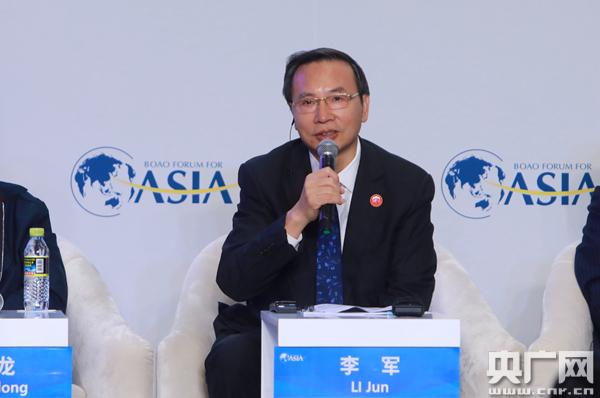 27日上午,海南省委副書記李軍在分論壇上發(fā)言。(央廣網(wǎng)記者 張凱航 攝)