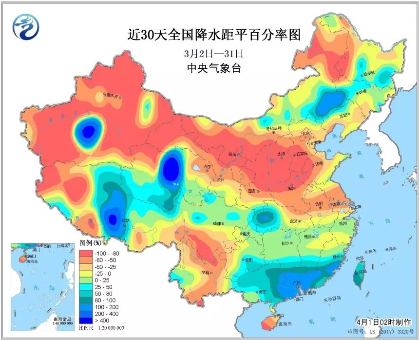 3月以來,華北、黃淮及內(nèi)蒙古東北部、黑龍江西部、四川南部、云南北部等地降水量較常年同期偏少8成以上(來源:中央氣象臺(tái))