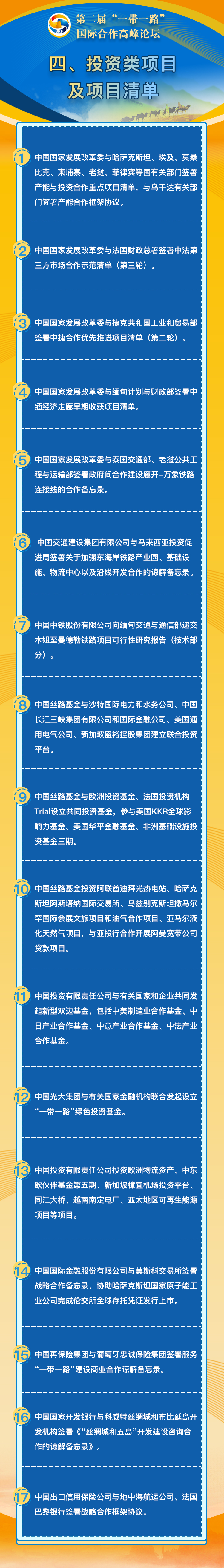 附:第二屆“一帶一路”國(guó)際合作高峰論壇成果清單