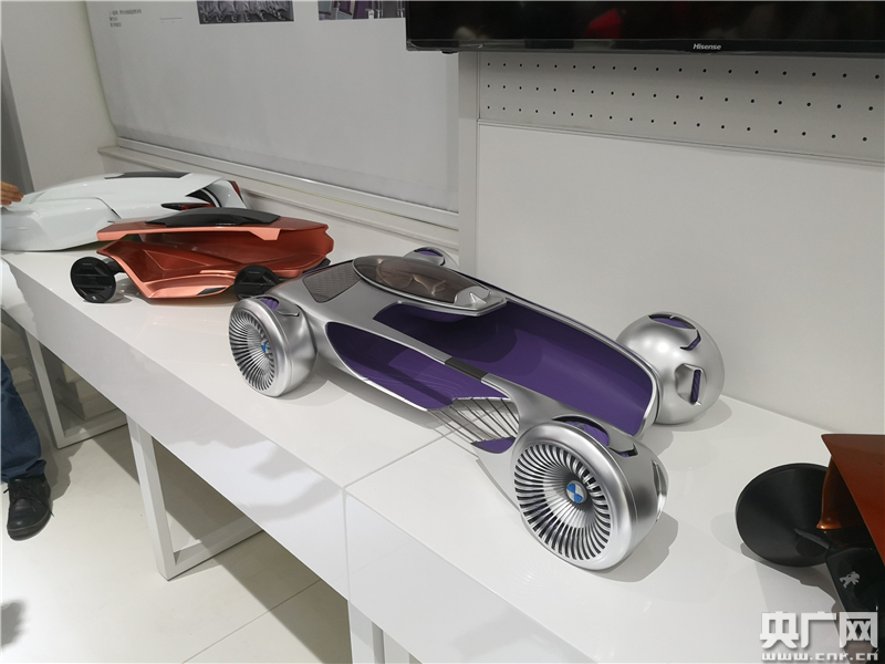 湖南大學(xué)設(shè)計(jì)藝術(shù)學(xué)院內(nèi)展示著學(xué)生自主設(shè)計(jì)的模型車(央廣網(wǎng)記者 劉一荻 攝)