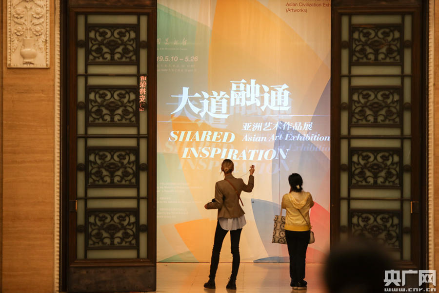 觀眾參觀“大道融通——亞洲藝術(shù)作品展”。(央廣網(wǎng)記者 韓靖 攝)