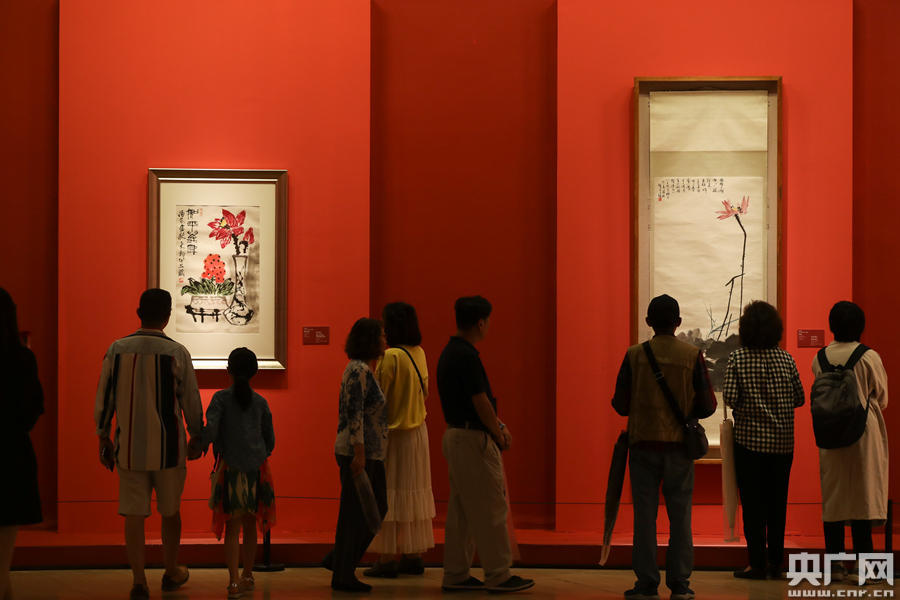 “東方寫意”展區(qū)的作品,吸引了大量觀眾。(央廣網(wǎng)記者 韓靖 攝)