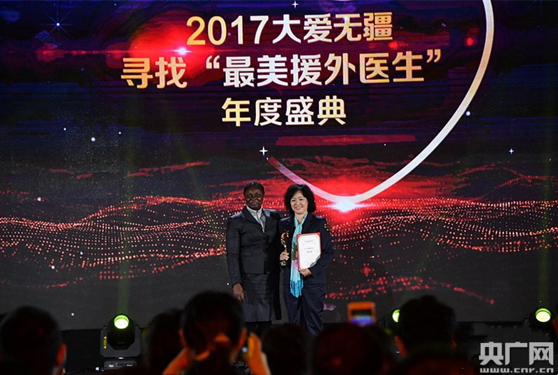 2017年,由中國(guó)人民對(duì)外友好協(xié)會(huì)與國(guó)家衛(wèi)生與計(jì)劃生育委員會(huì)等聯(lián)合主辦的“大愛(ài)無(wú)疆——尋找最美援外醫(yī)生”公益活動(dòng)年度盛典于11月9日在北京舉辦,因她與團(tuán)隊(duì)“正在改變西非心臟病防治歷史”,以及申請(qǐng)成立“中加西非心臟合作項(xiàng)目”,林純瑩被評(píng)為“最美援外醫(yī)生”。(受訪者供圖 央廣網(wǎng)發(fā))