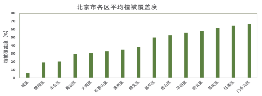 2018 年北京市各區(qū)平均植被覆蓋度 (北京市生態(tài)氣象和衛(wèi)星遙感中心供圖)