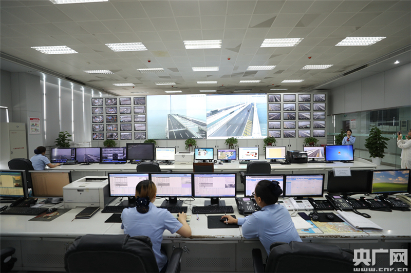 膠州灣大橋監(jiān)控調(diào)度中心。(央廣網(wǎng)記者 韓靖 攝)
