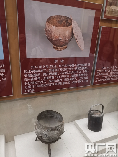 貴州省黎平縣黎平會(huì)議紀(jì)念館內(nèi)陳列的鼎罐(央廣記者熊逸攝)