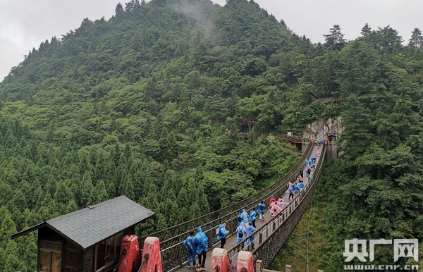 主題采訪(fǎng)團(tuán)記者行走在位于貴州省黎平縣高屯街道上少寨的紅軍橋(央廣記者熊逸攝)