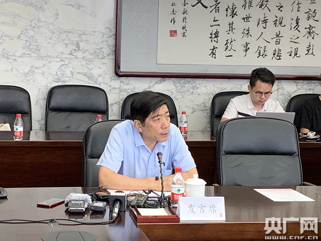 圖為霍建國(guó)在研討會(huì)發(fā)言。(央廣網(wǎng)記者 馬文靜 攝)