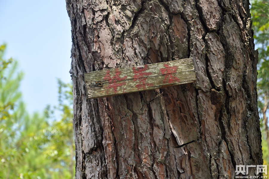 掛有烈士姓名木牌的青松,曾經(jīng)的小樹已長成參天大樹(央廣網(wǎng)記者 王子衿 攝)