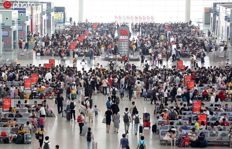 2019年10月5日,在江西南昌西車站,旅客正在候車。國慶假期過半,全國鐵路于當(dāng)日開始出現(xiàn)返程客流高峰(央廣網(wǎng)發(fā) 東方IC供圖)