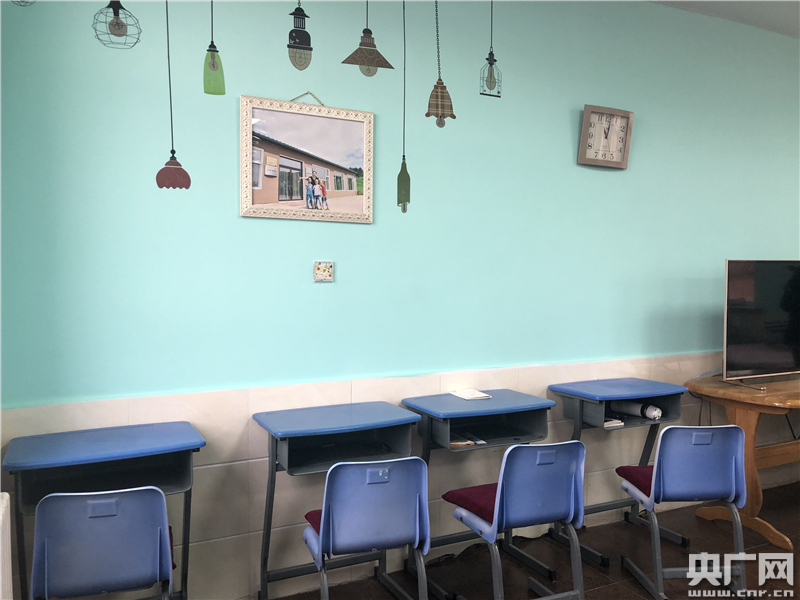 孩子們臥室內(nèi),擺放著幾張課桌,胡艷蘋常教他們看圖識(shí)字(央廣網(wǎng)記者 王晶 攝)