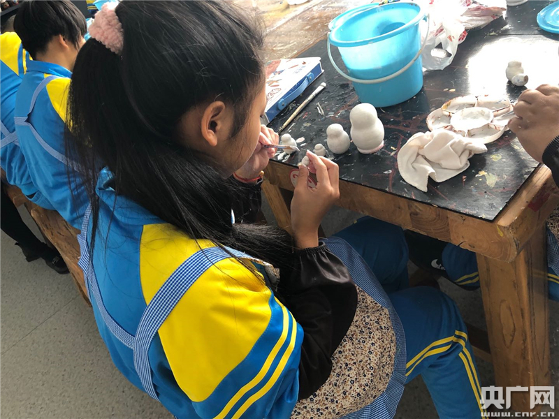 九臺(tái)區(qū)特殊教育學(xué)校的孩子們正在上彩繪課(央廣網(wǎng)記者 王晶 攝)