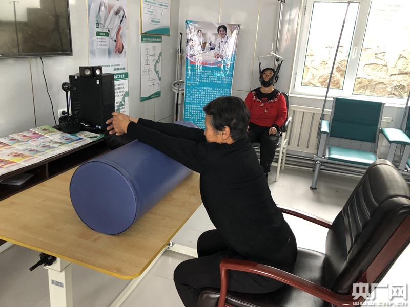 村民正在衛(wèi)生室內(nèi)進(jìn)行康復(fù)訓(xùn)練(央廣網(wǎng)記者 王晶 攝)